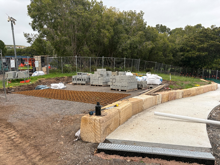Stage 1: Multi-use court, social seating, landscaping, connecting footpaths and fitness station.